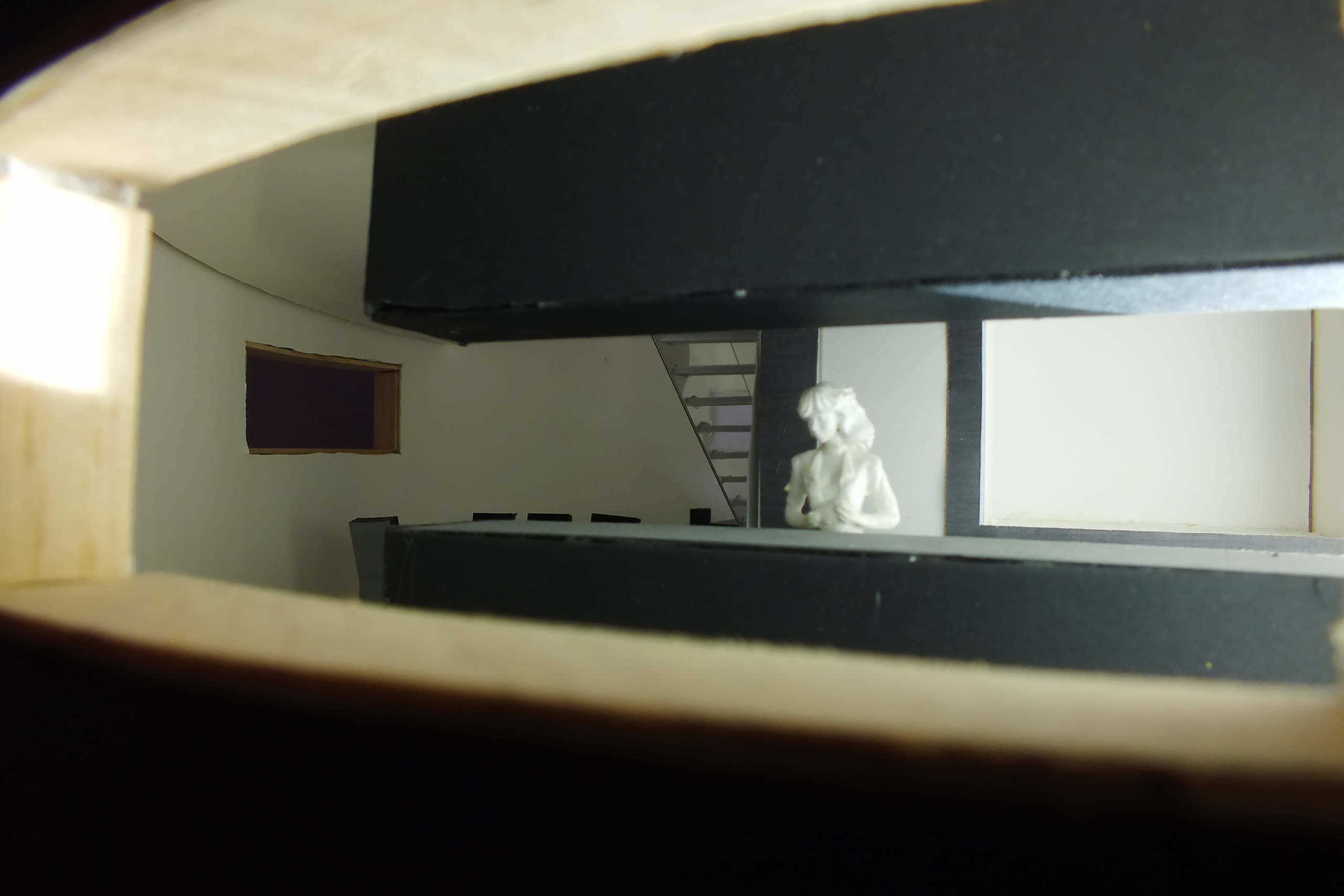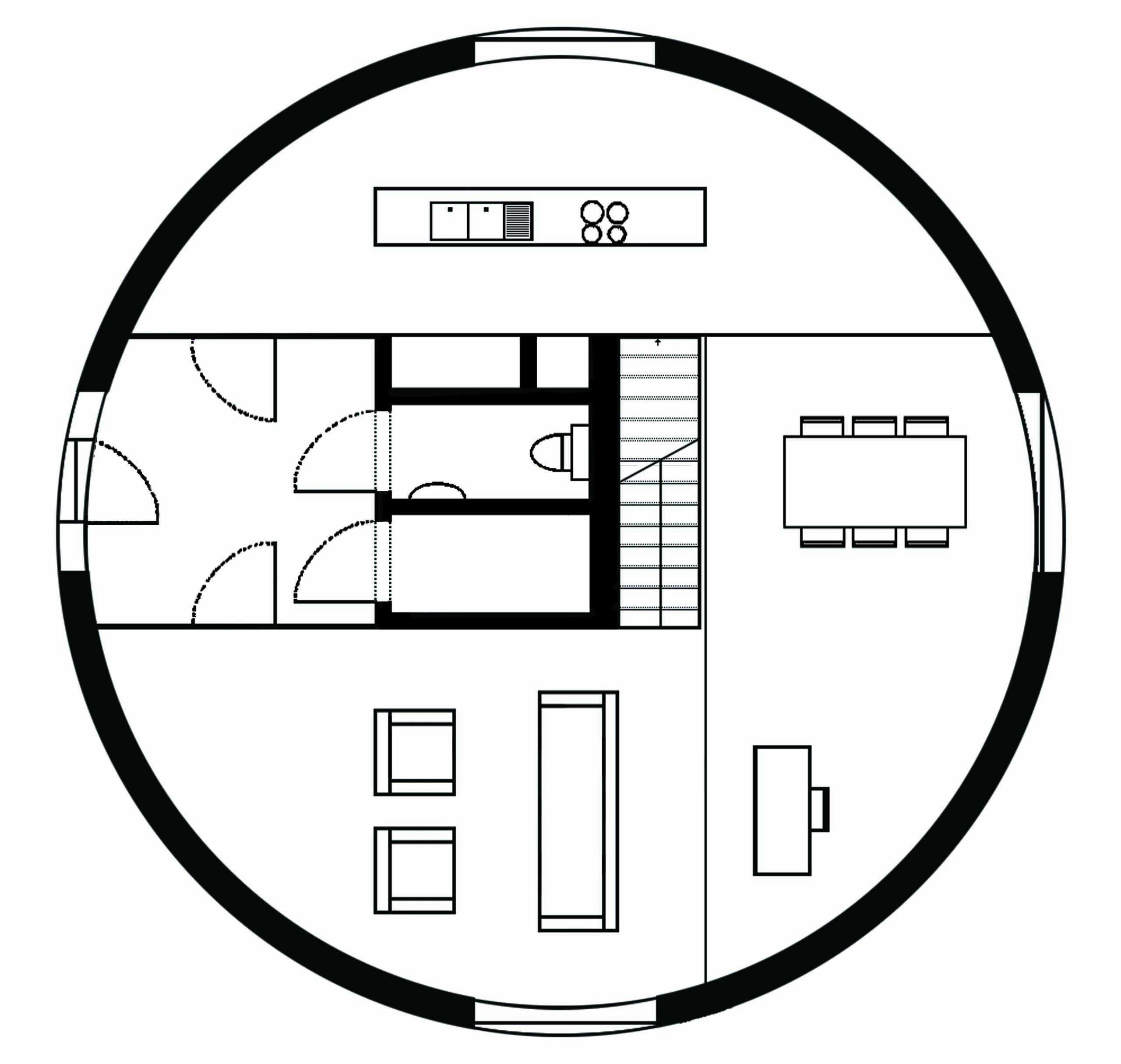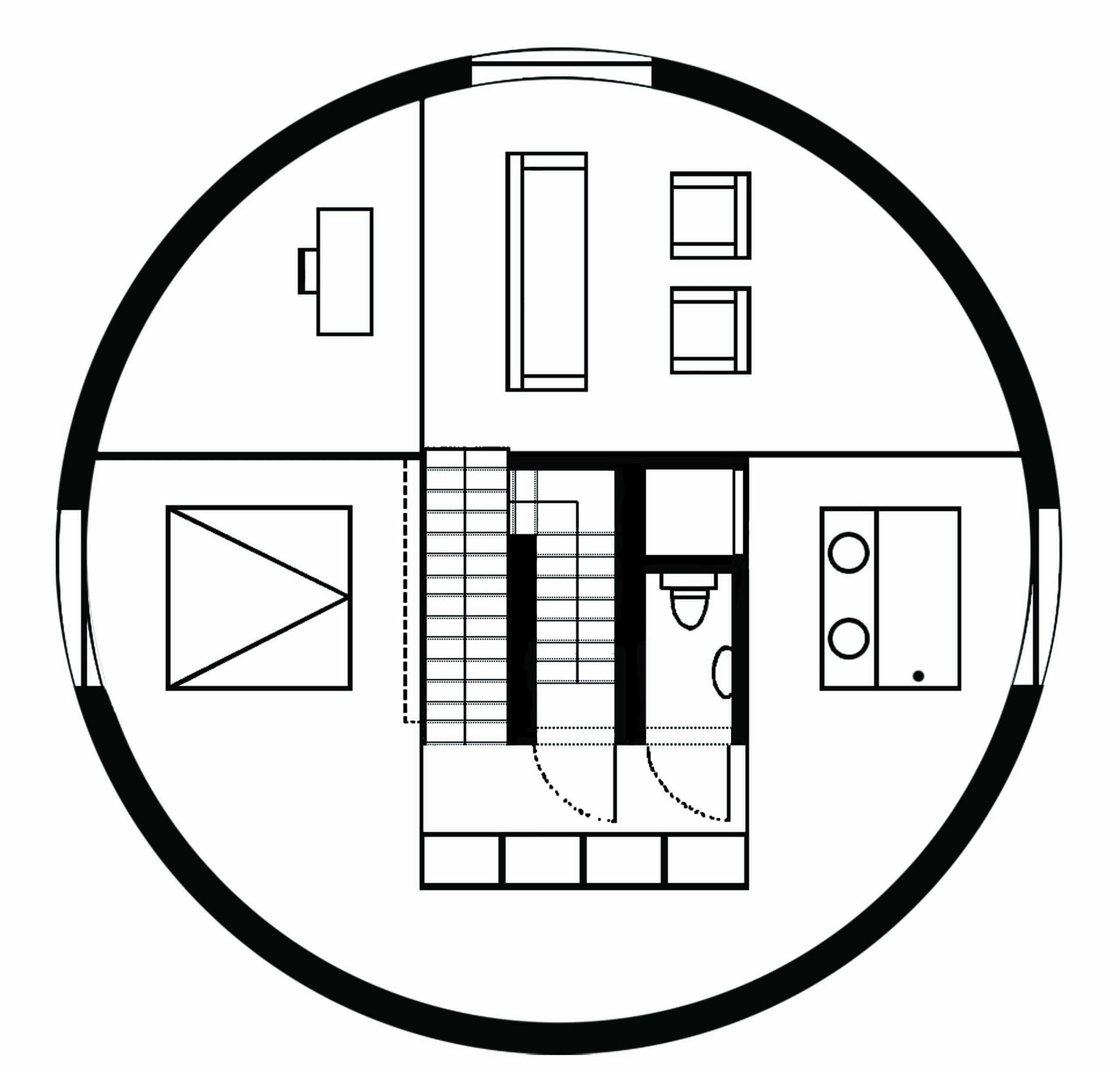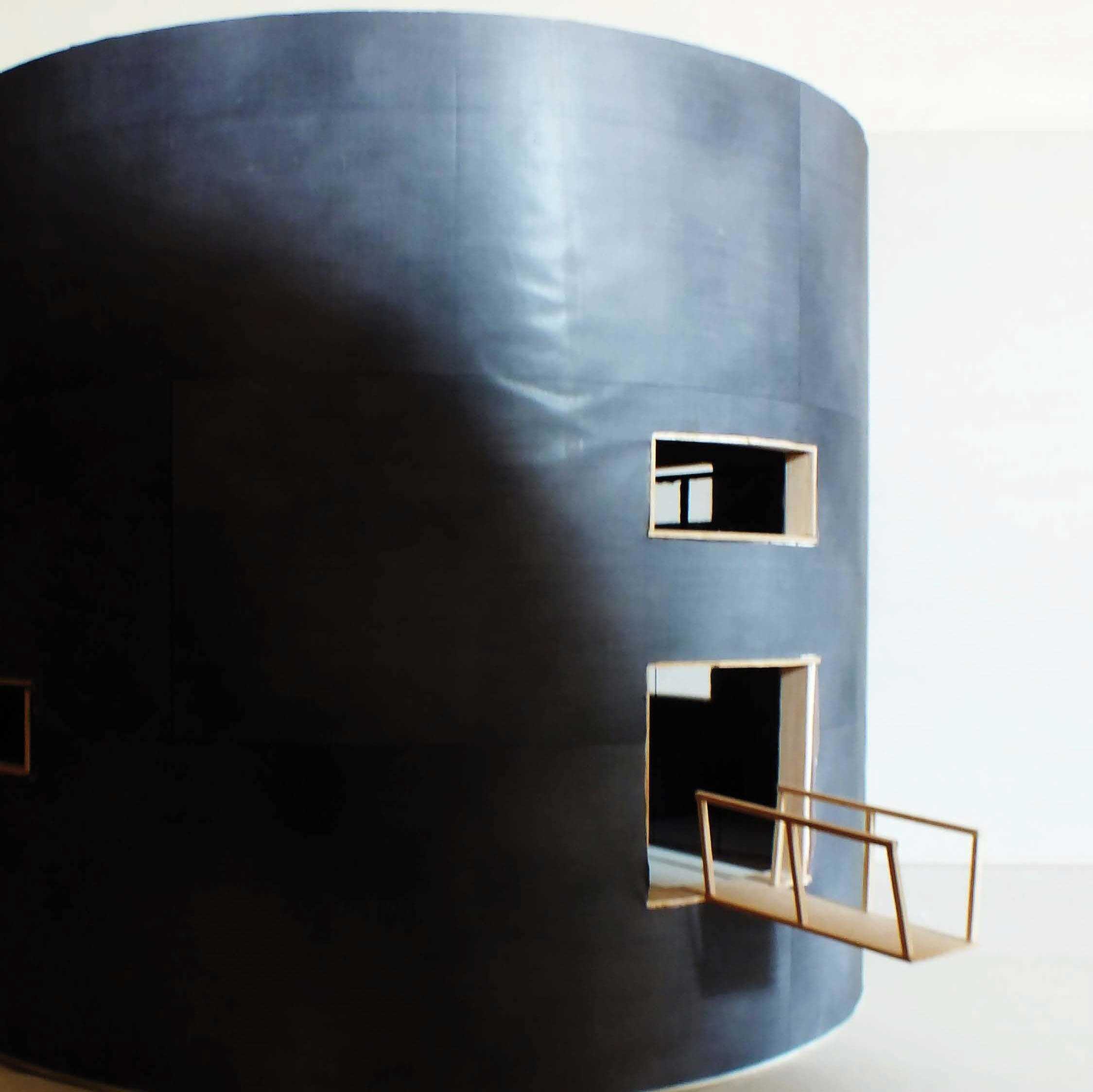 Op de zuiderdokken staat een ongebruikte opslagton. Deze kan gerenoveerd worden tot een woning. Omdat deze cilindervorm moeilijk is om in te richten, heb ik ervoor gekozen om een verticaal balkvormig element in het midden van de ton te plaatsen zodat er toch rechte muren gecreëerd worden. In dit element komen de opslagruimtes, een keukenaanrecht en een douche. De trap naar het dak is ook gelegen in deze koker. De verticale circulatie naar het eerste verdiep gaat rond het element. Deze circulatie wordt mogelijk gemaakt door een zwevende trap met een glazen leuning om meer openheid te creëren.